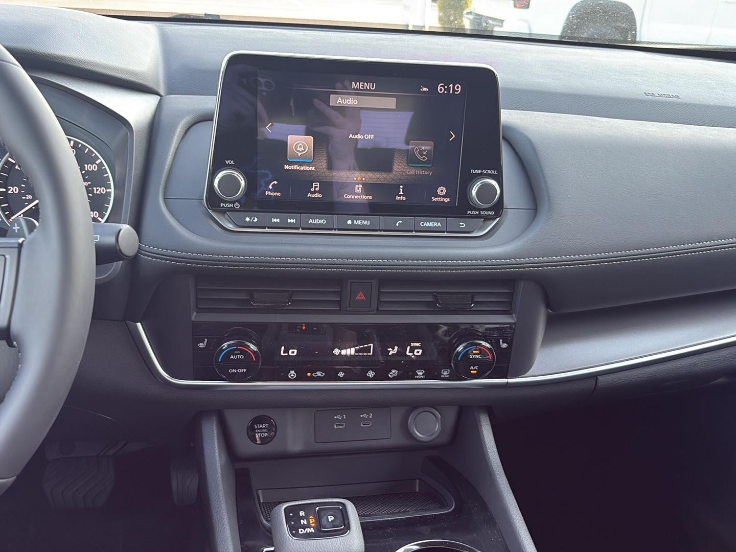 - Radio: AM/FM NissanConnect -inc: 6 speakers plus 2 tweeters, Apple CarPlay, Android Auto, 8" color touch screen display, Bluetooth®, 2 front USB type-C, Wi-Fi hotspot and NissanConnect Services powered by SiriusXM