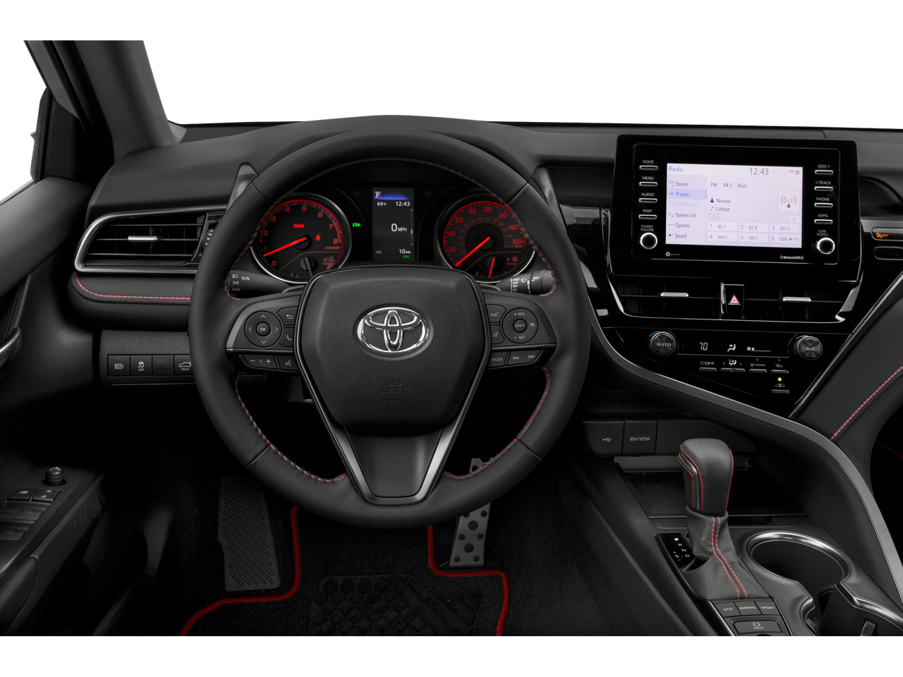 Electronic Stability Control, Brake Assist, 4-Wheel ABS, Tire Pressure Monitoring System, 4-Wheel Disc Brakes Toyota TRD V6 with Ice Edge/Midnight Black Metallic exterior and BLACK W/ RED interior features a V6 Cylinder Engine with 301 HP at 6600 RPM*.