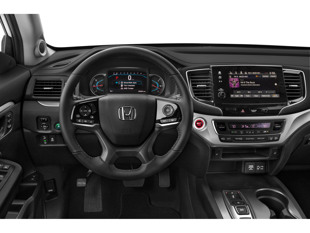 - Radio: 215-Watt Audio System -inc: 7 speakers, subwoofer, Bluetooth® HandsFreeLink and streaming audio, MP3/auxiliary input jack, Radio Data System (RDS), Speed-sensitive Volume Compensation (SVC), 2.5-amp USB charging port (1 port in center console/2 ports on 2nd-row), 8" display audio w/high-resolution touch-screen and customizable feature settings, HondaLink, CabinControl remote compatibility, Apple CarPlay integration, Android Auto integration, SMS text message function, SiriusXM (SiriusXM requires a subscription after any trial period, If you decide to continue your SiriusXM service at the end of your trial subscription, the plan you choose will automatically renew and bill at then-current rates until you call SiriusXM at 1-866-635-2349 to cancel, See our customer agreement for complete terms at www.siriusxm.com, Fees and programming subject to change, Available in the 48 contiguous United States and D.C, SiriusXM and all related marks and logos are trademarks of SiriusXM Radio Inc.), HD radio and 2.5-amp USB smartphone/audio interface (1 port in front console)