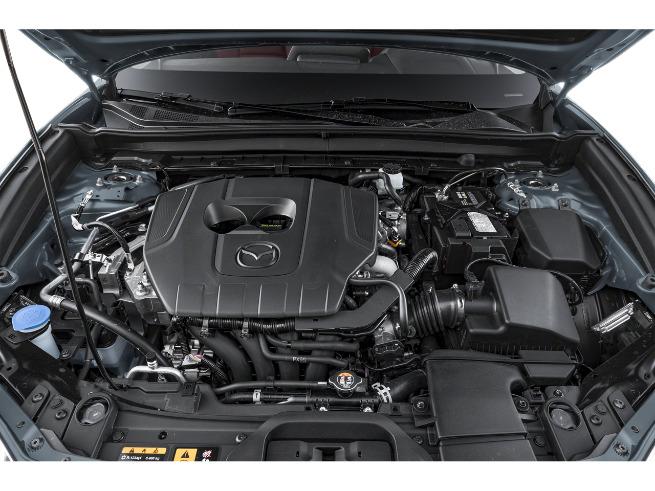 Cross-Traffic Alert, Electronic Stability Control, Brake Assist, 4-Wheel ABS, 4-Wheel Disc Brakes, Tire Pressure Monitoring System Mazda CX-30 2.5 S Carbon Edition with Polymetal Gray Metallic exterior and Red interior features a 4 Cylinder Engine with 191 HP at 6000 RPM*.