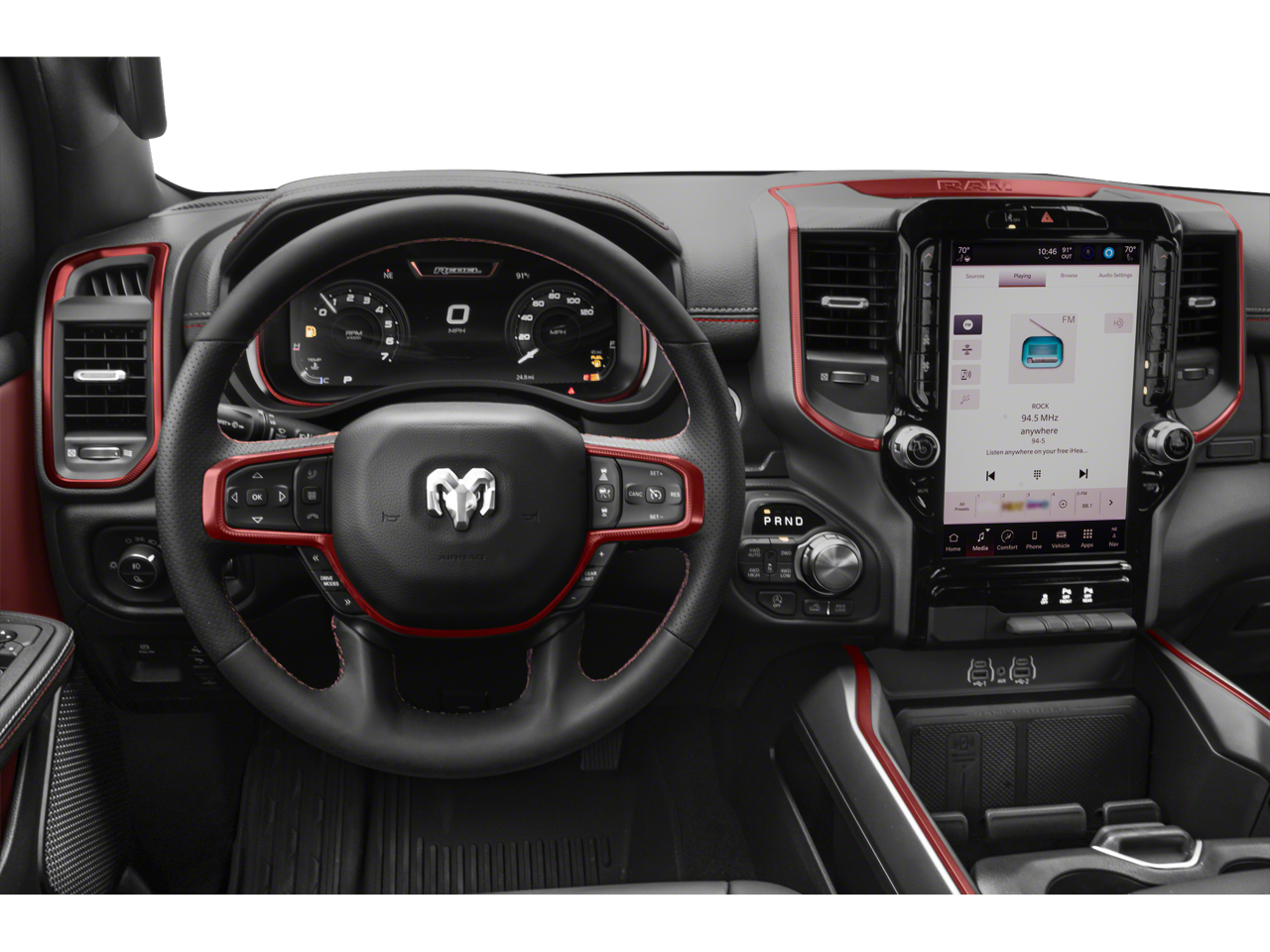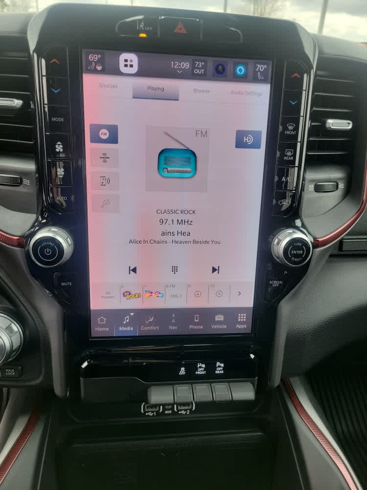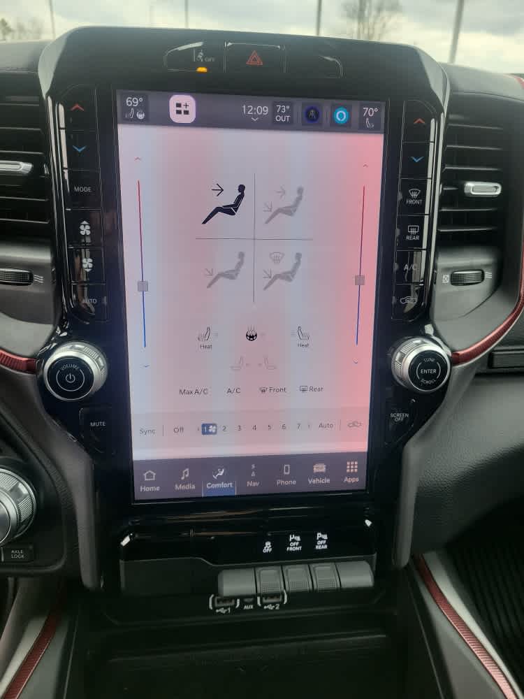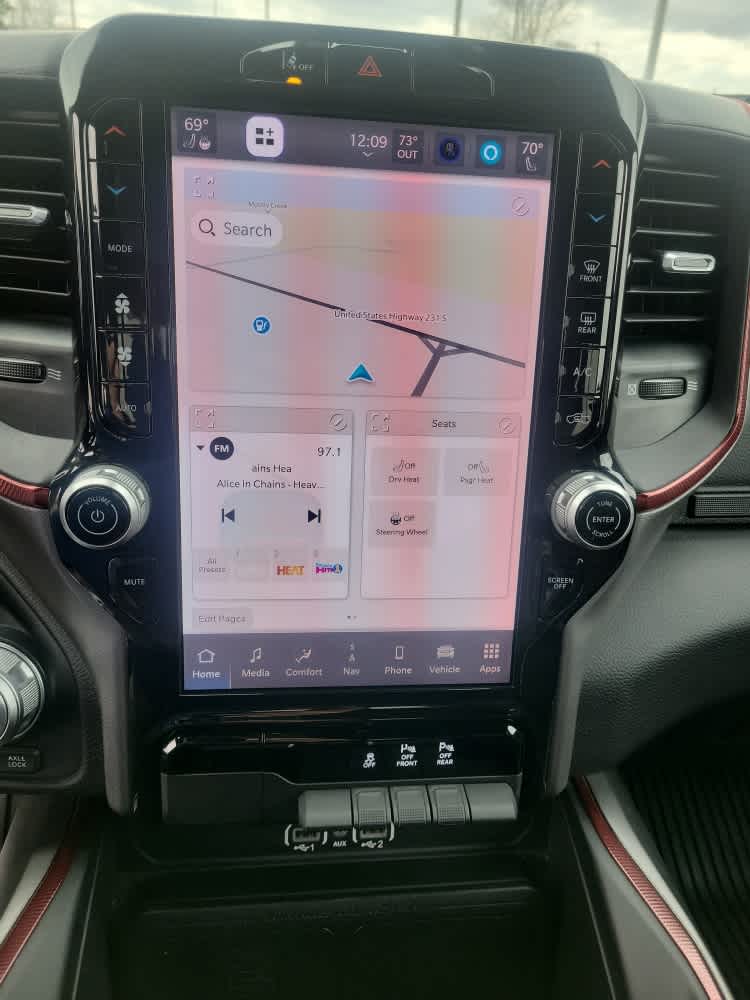 Navigation, Heated Driver Seat, Back-Up Camera, Premium Sound System, Satellite Radio, iPod/MP3 Input, Bluetooth®, Trailer Hitch, Aluminum Wheels, Remote Engine Start, Dual Zone A/C, Apple CarPlay®, Lane Keeping Assist, Cross-Traffic Alert, WiFi Hotspot. Ram Rebel with Billet Silver Metallic Clearcoat exterior and Red/Black interior features a Straight 6 Cylinder Engine with 420 HP at 5200 RPM*.